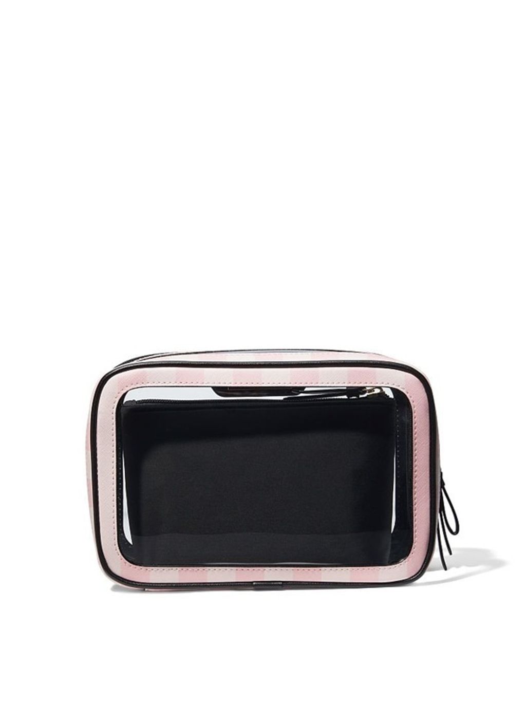Triple the glam. This iconic stripe trio fits everything you could ever need. Together or separate, the clear exterior to helps you quickly find what you’re looking for.