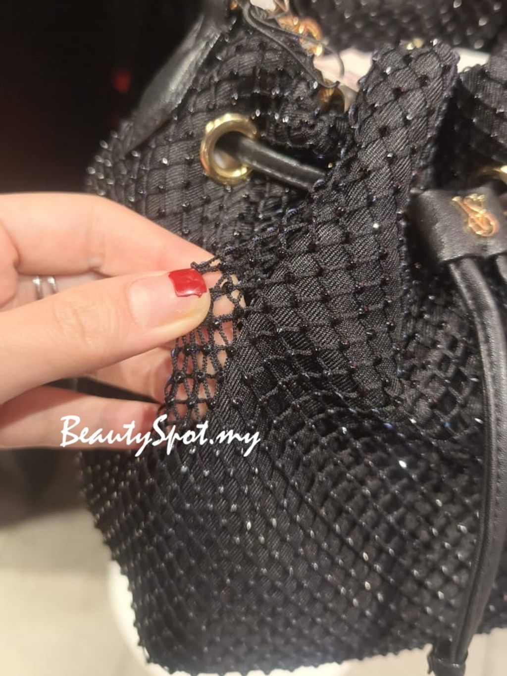 Victoria's Secret Mini Bucket Bag - Black Rhinestone Mesh