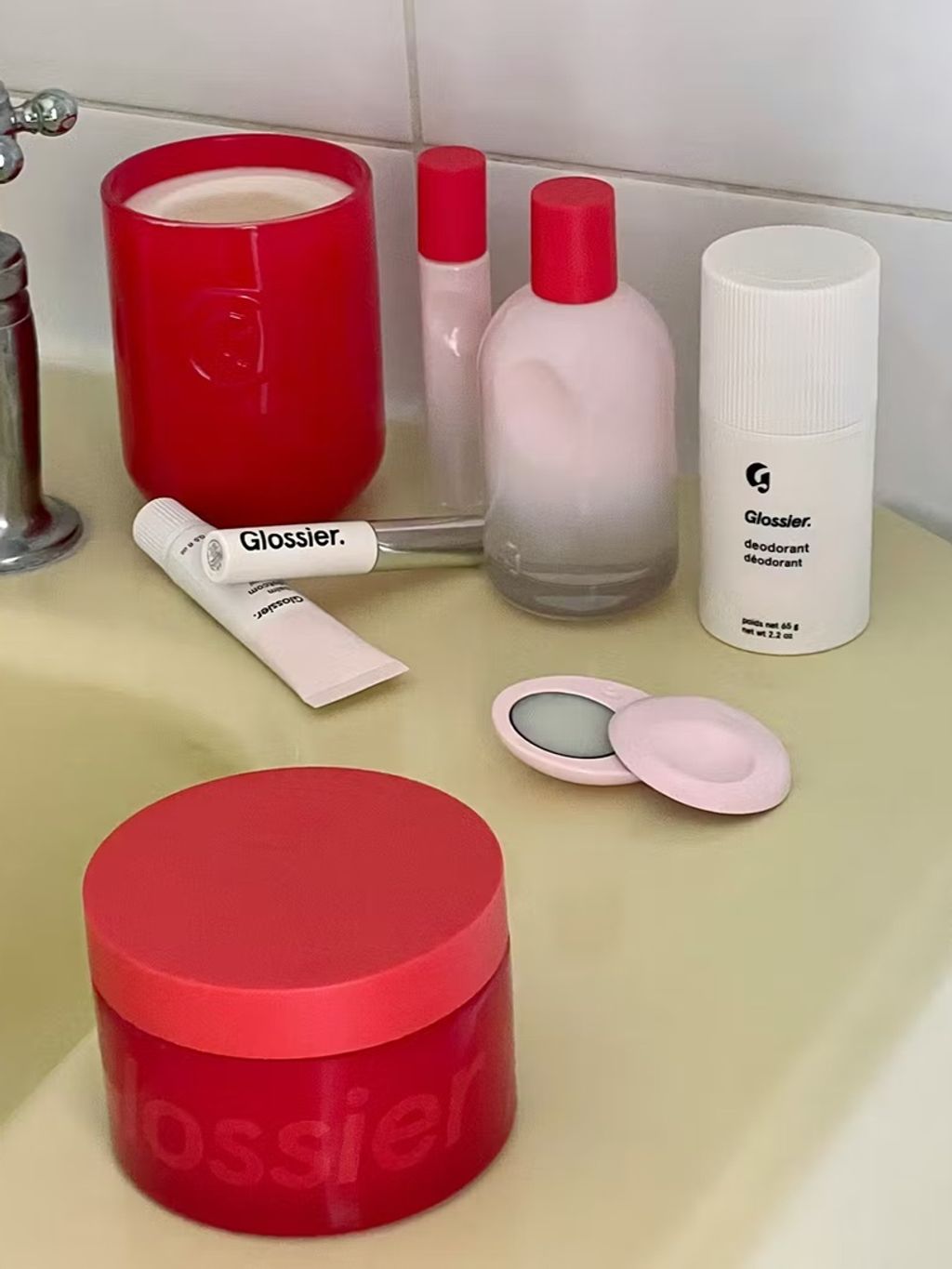 - the iconic Glossier You Eau de Parfum fragrance, with a sparkling top note of Pink Pepper, earthy Iris heart, and warm creamy base notes of Ambrette + Ambrox.