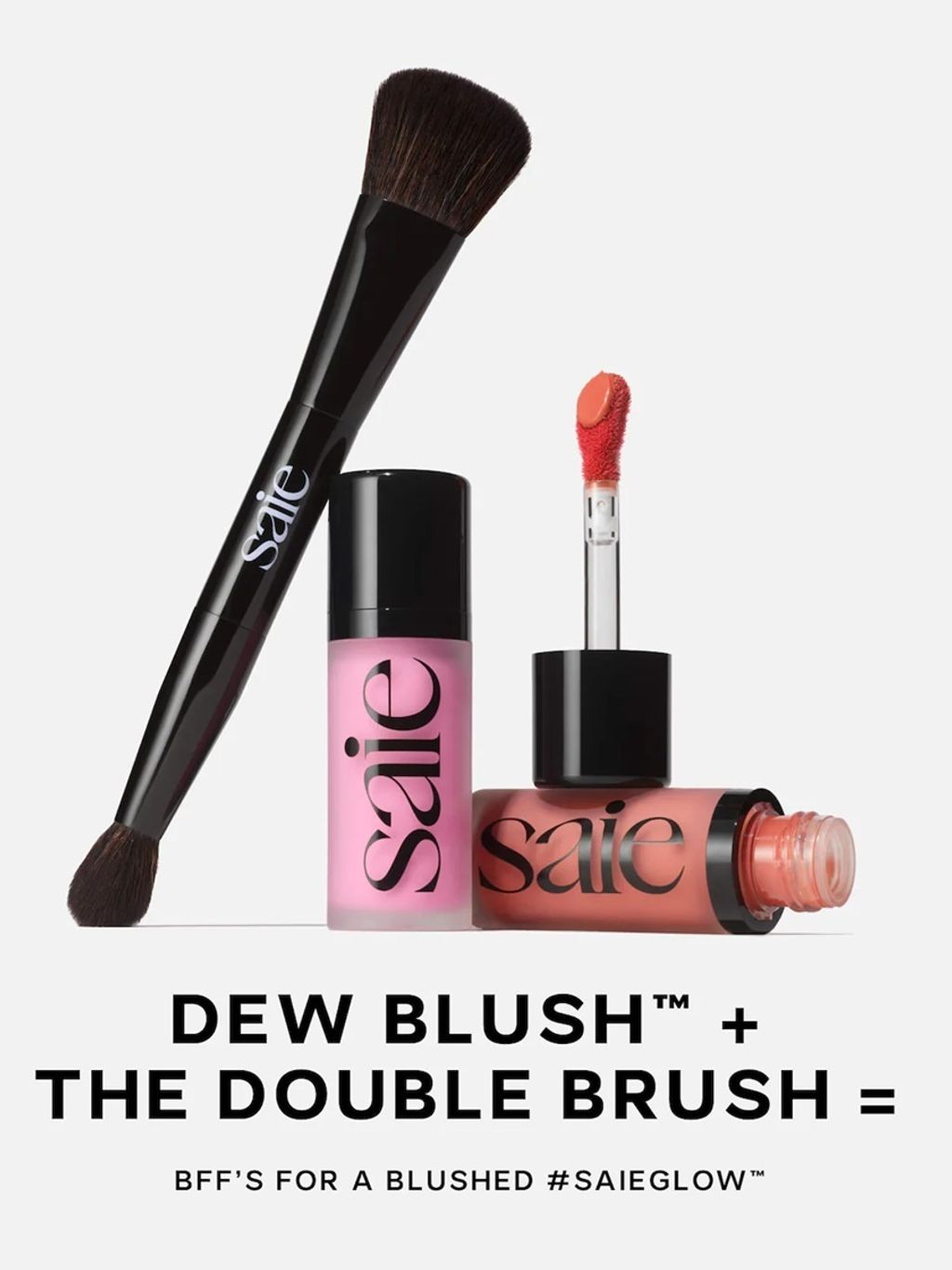 Saie Pro Tip: Apply higher and work upwards towards the temple to create a lifted flush.
