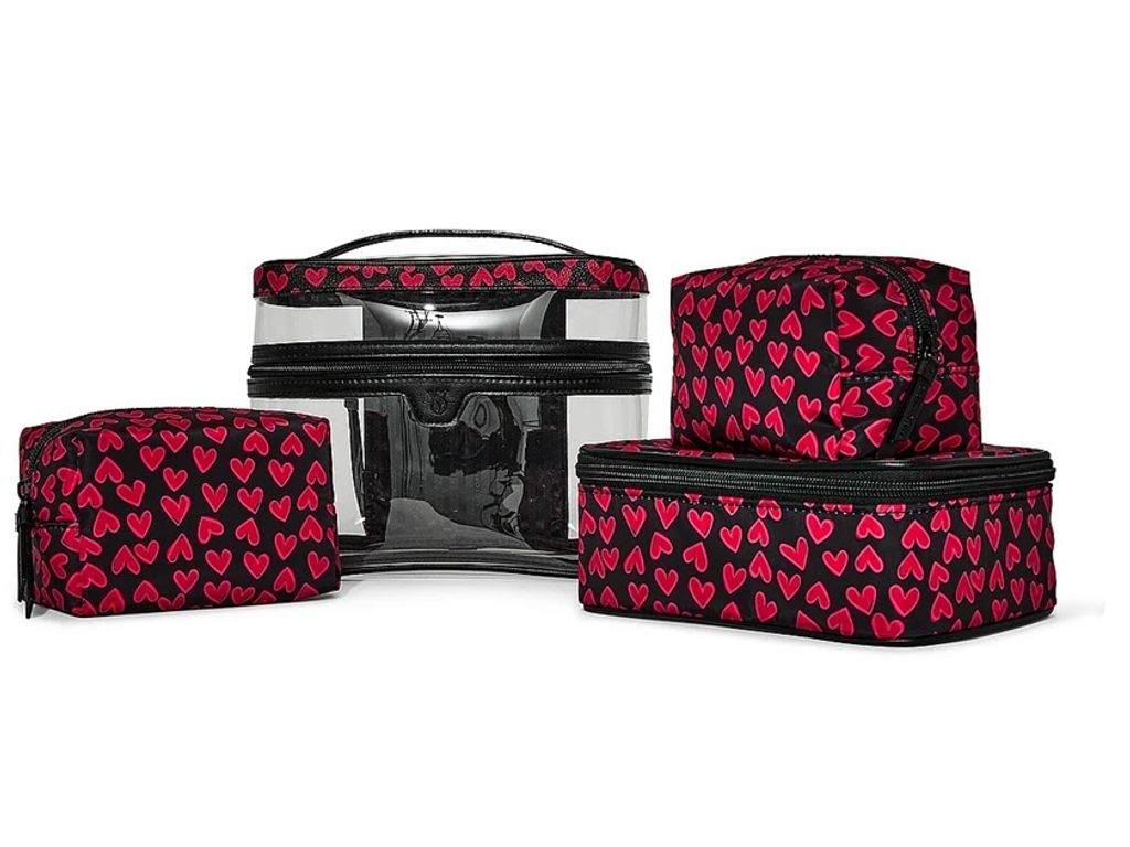 Victoria's Secret 4-Piece Makeup Bag - Black Grounded Heart