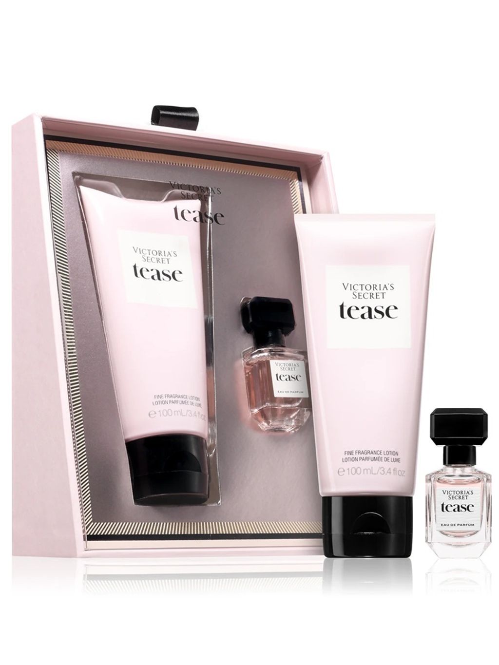 The joy of gifting little luxuries. Fragrance is more than a gift, it's a memory. Chosen with care, and given with love, a moment on skin is forever linked with you. The perfect little luxury, this stocking stuffer-sized box holds a mini Eau de Parfum and lotion. Playful & feminine, Tease is a delicious mix of petally florals wrapped in warmth. Wherever you go, this duo goes, too.