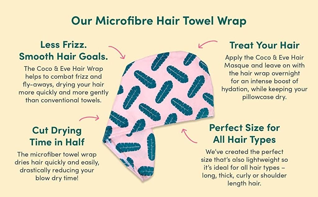 - Soft, super water-absorbent microfibre hair towel wrap in our signature Coco & Eve Bali tropical leaf print