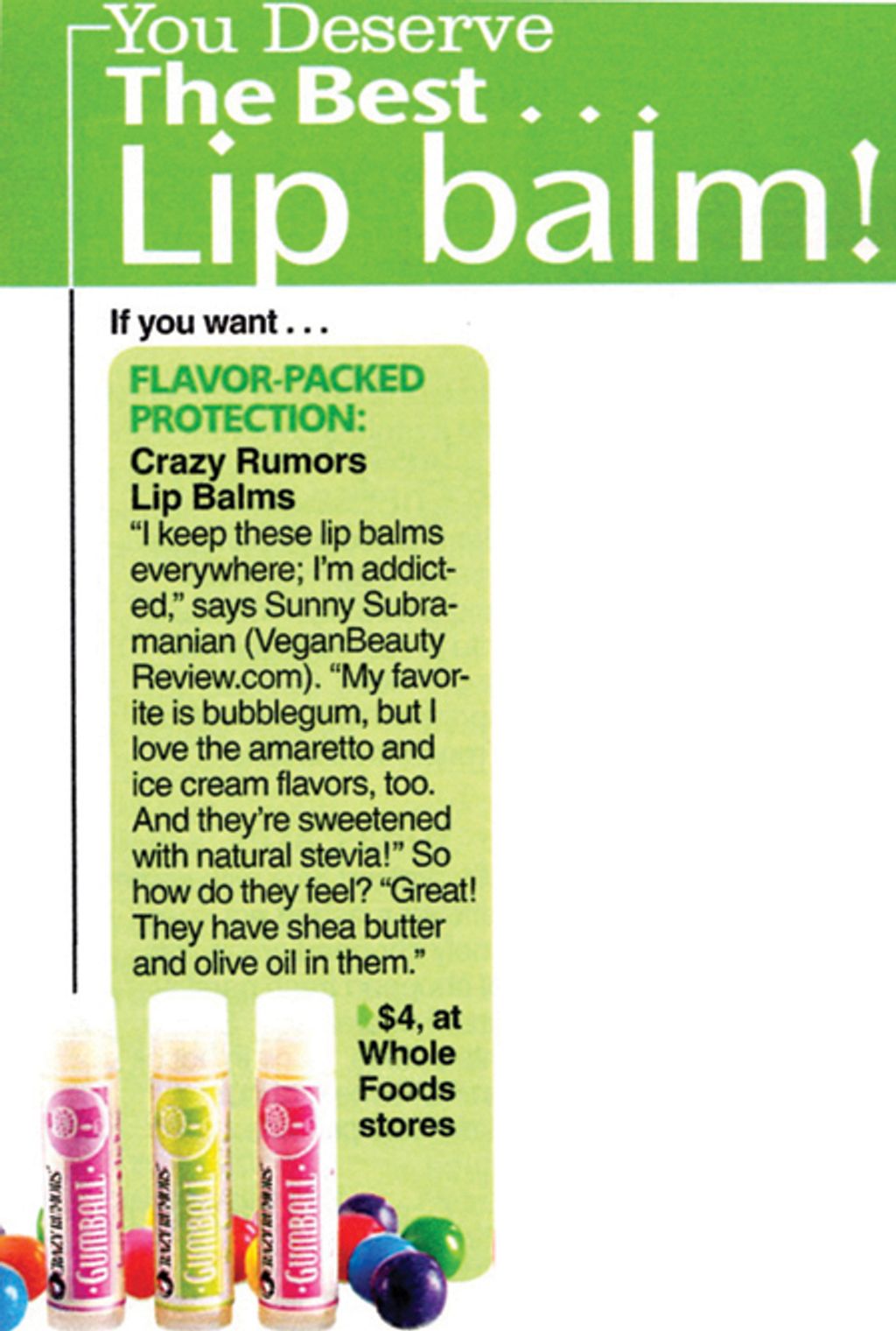 100% Natural Ingredients (the good stuff): Macadamia ternifolia (macadamia) seed oil, *olea europaea (olive) oil, *butyrospermum parkii (shea) butter, euphorbia cerifera (candelilla) wax, glycine soja (soybean) wax, simmondsia chinensis (jojoba) seed oil, copernicia cerifera (carnauba) wax, aroma (natural flavors), tocopherol (vit E), & eupatorium rebaudianum bertoni (stevia)