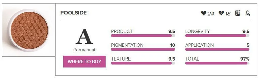POOLSIDE: CYCLOPENTASILOXANE, DIMETHICONE, TRIMETHYLSILOXYSILICATE, BORON NITRIDE, C30-45 ALKYL CETEARYL DIMETHICONE CROSSPOLYMER, ISODODECANE, CYCLOHEXASILOXANE, DIMETHICONE/VINYLTRIMETHYLSILOXYSILICATE CROSSPOLYMER, PHENOXYETHANOL, DIMETHICONOL, DISTEARDIMONIUM HECTORITE, GLYCINE SOJA (SOYBEAN) OIL, MANGIFERA INDICA (MANGO) SEED BUTTER, PROPYLENE CARBONATE, ETHYLHEXYLGLYCERIN, ALUMINA, CUCUMIS SATIVUS (CUCUMBER) FRUIT EXTRACT, BISMUTH OXYCHLORIDE (CI 77163), MICA (CI 77019), IRON OXIDES (CI 77491, CI 77492, CI 77499), TITANIUM DIOXIDE (CI 77891).