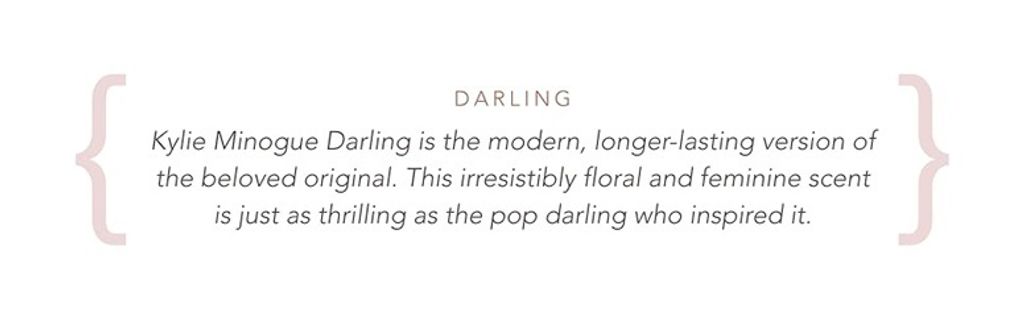 Created as a modern, longer-lasting version of the beloved original, Kylie Minogue Darling is an irresistible floral with an addictive base of sandalwood and amber.