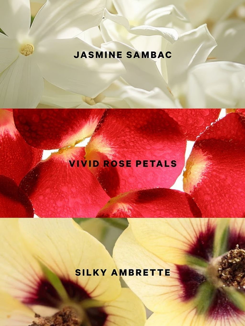 - Notes: vivid rose petals, jasmine sambac, silky ambrette
