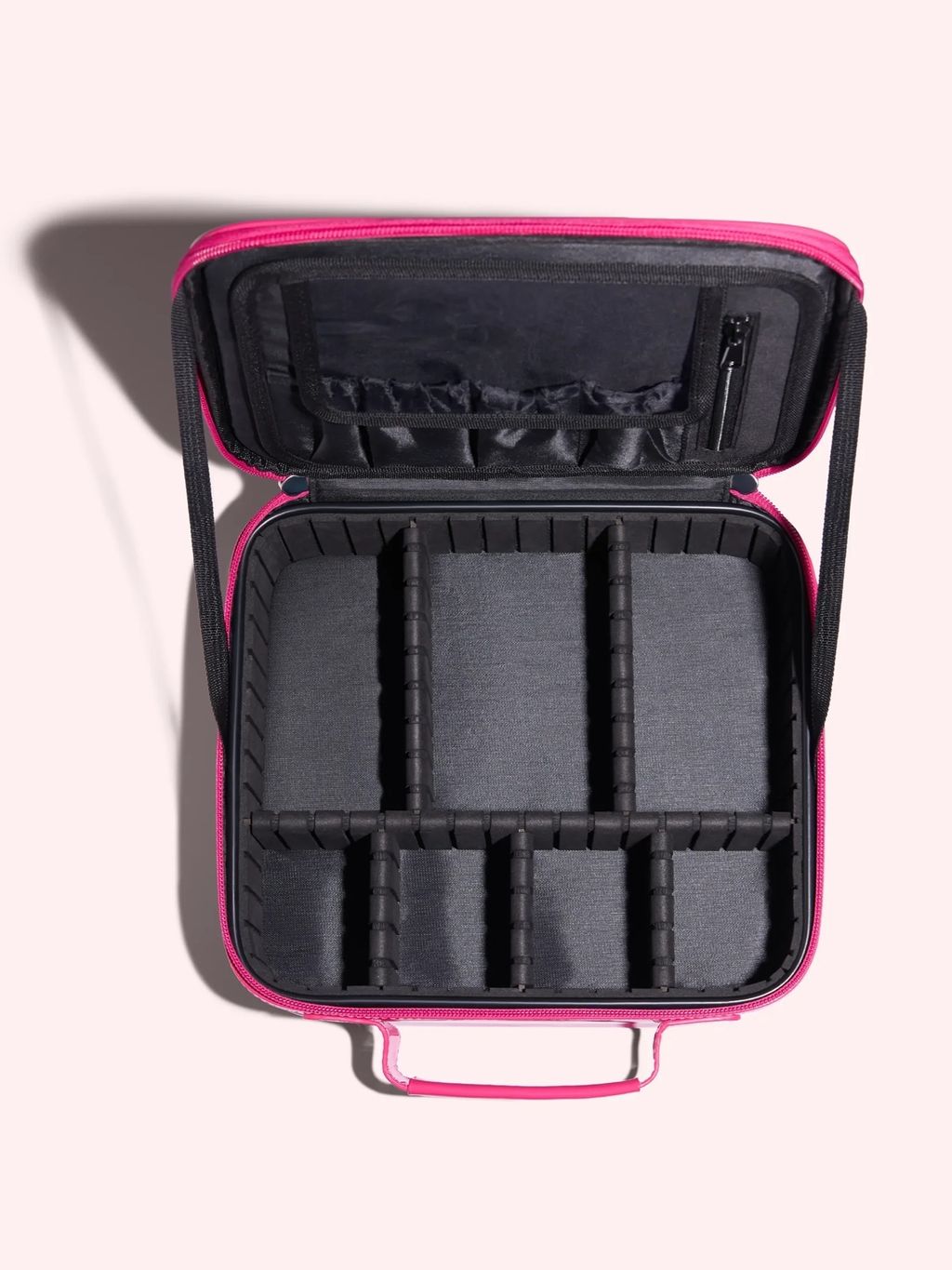 The ultimate Huda Beauty vanity for organizing all your makeup essentials in style! Finished in our iconic glossy Power Pink with a signature monogram zipper, it’s super roomy to fit all your Huda Beauty faves. Featuring multiple compartments, a removable insert and a detachable mirror, you can customize your space (or expand it) and take your glam to go! Comes complete with a matching Power Pink dust bag to keep it looking glossy-fresh.