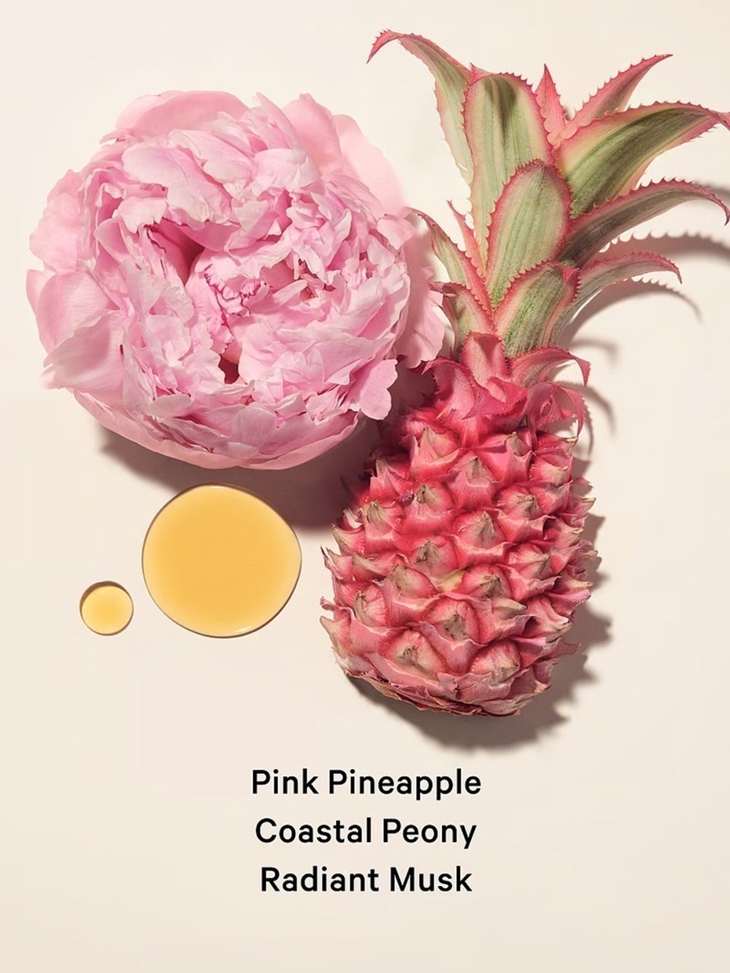 Luminous and lively. Our light-as-air mist offers a refreshing hint of scent. Channel a European summer with a radiant rush of rare pink pineapple, coastal peony, and effortless musk.