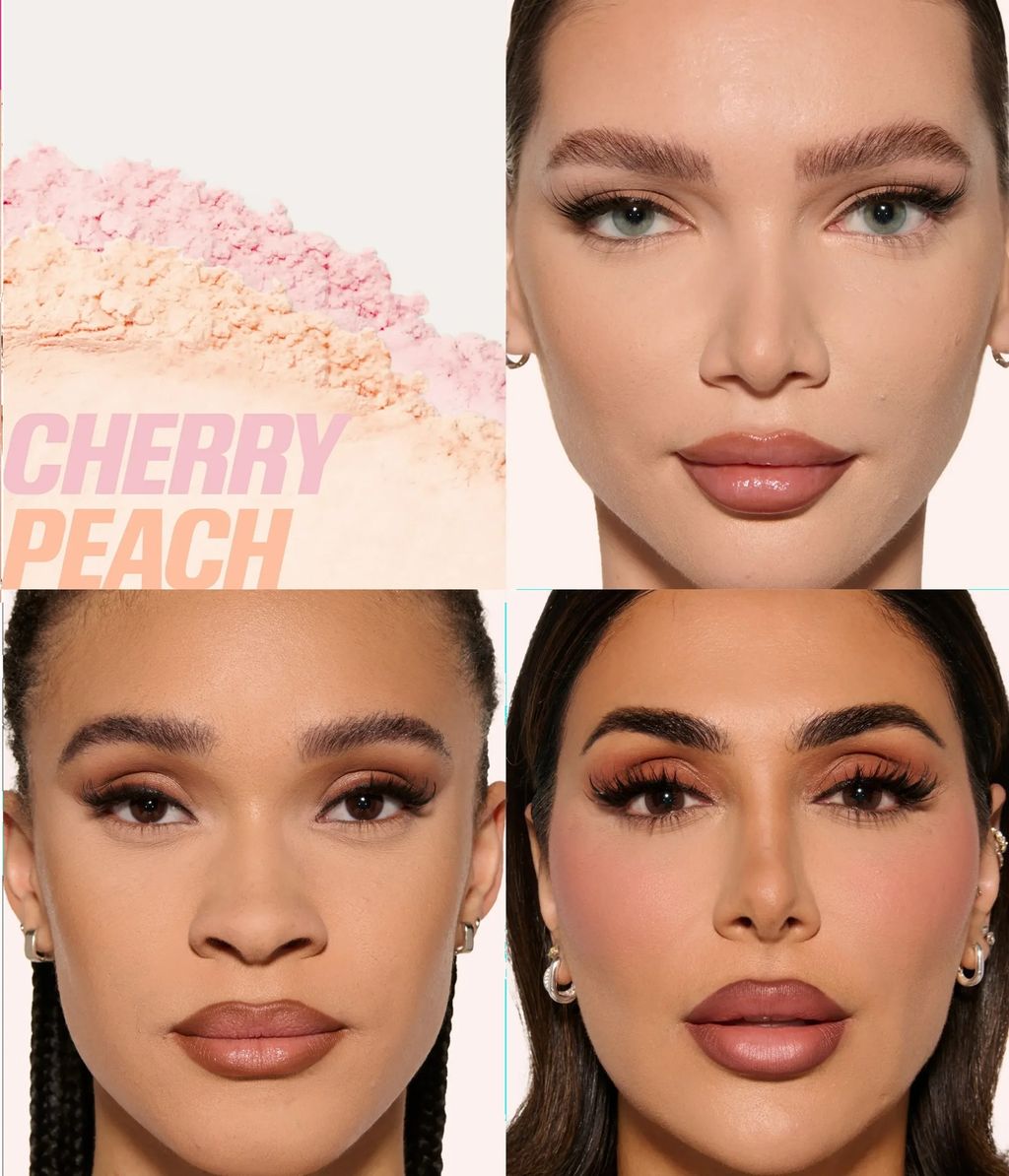 - Our iconic loose setting powder, now in a duo! Non-comedogenic brightening pink & color correcting peach blurs pores with no flashback for an 18hr blur & set.