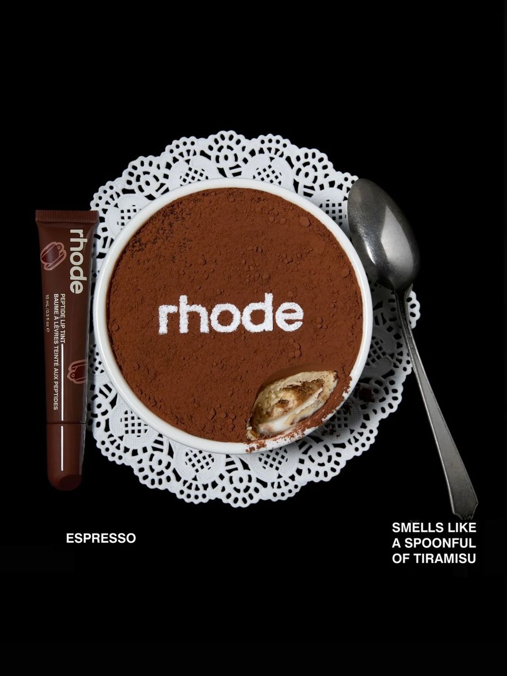 Meet the Scented Peptide Lip Tint in Espresso. A sweet twist on the classic rich brown shade that smells like a spoonful of tiramisu. Our timeless, award-winning formula melts onto lips for sheer-but-buildable color and yummy, decadent scent.