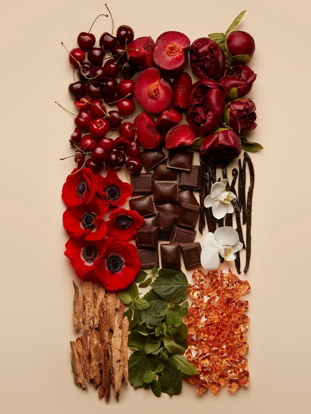 - HEART: Red Poppy, Peony Blossom, Dark Chocolate, Vanilla Orchid