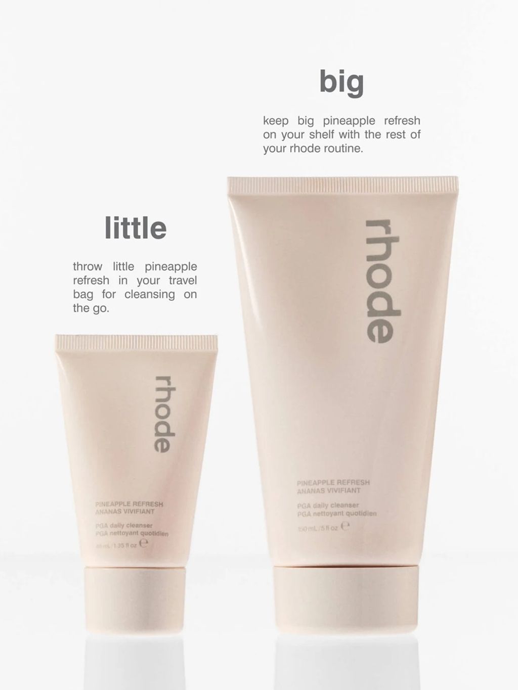 The first step in your rhode routine. Pineapple Refresh is a gentle balm-to-lather daily cleanser that removes SPF and makeup while leaving skin clean, soft, and hydrated post-rinse. Gentle surfactants won’t disrupt your skin’s fragile moisture barrier or leave skin tight and dry.