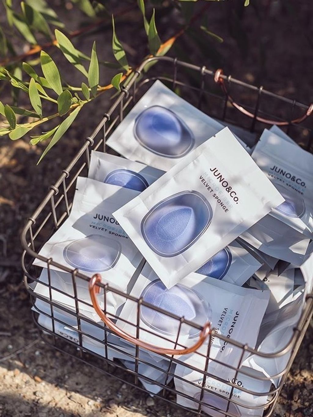 - Unlike other blending sponges, the JUNO Velvet Sponge is lightweight and made of a microfiber material that's velvety soft. We've designed the JUNO Velvet Sponge with all-over makeup application in mind, with a tapered design for precision blending for every contour of the face and a flat bottom for a more ergonomic and natural looking all-over application.