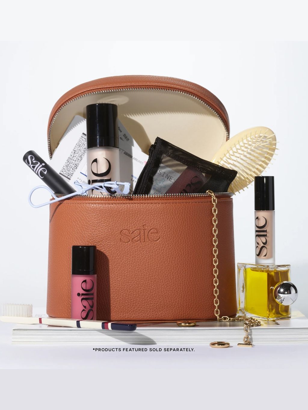 Saie The Vanity Case (Original Train Case) - Caramel Brown