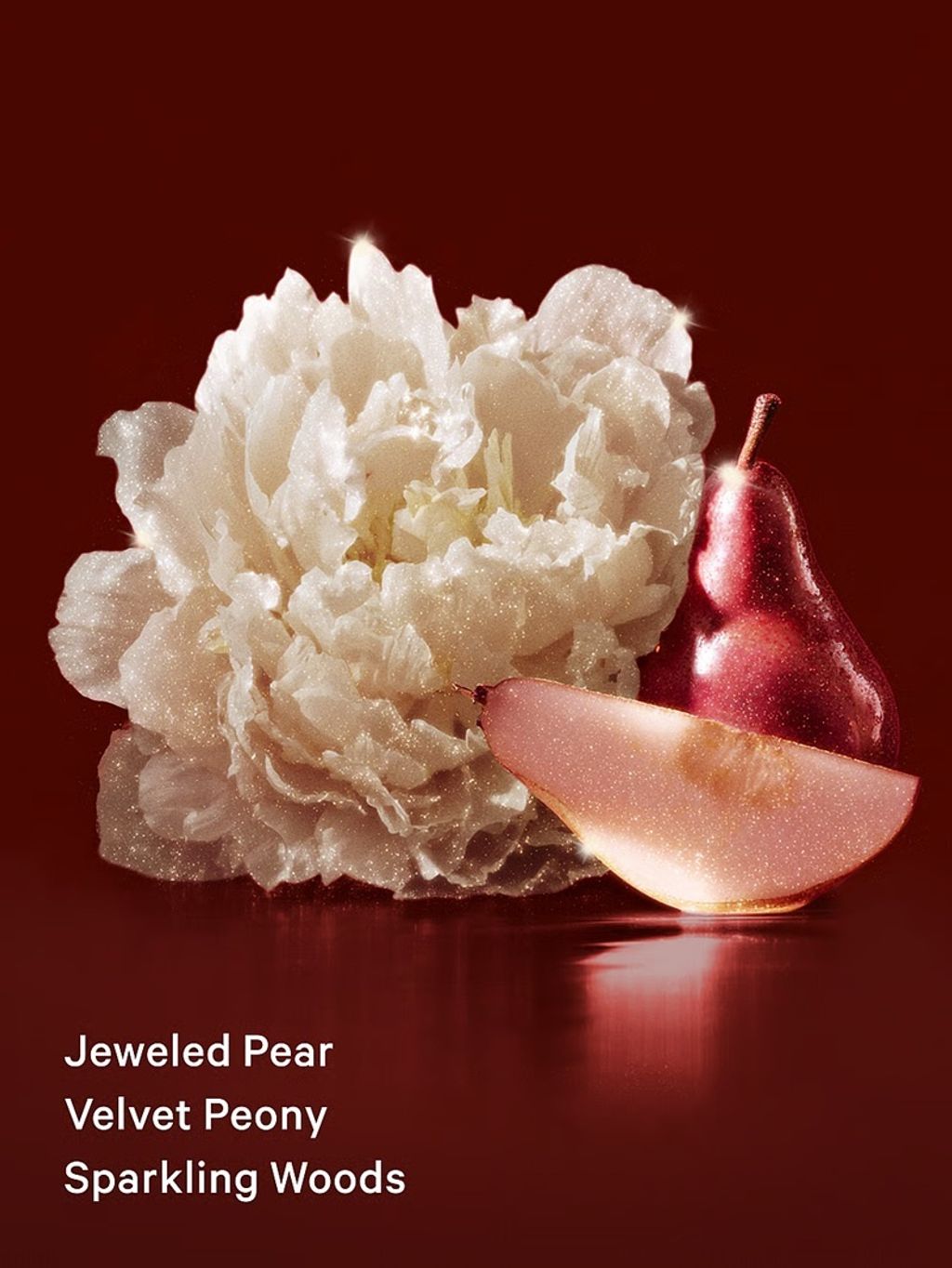 • Notes: jeweled pear, velvet peony, sparkling woods