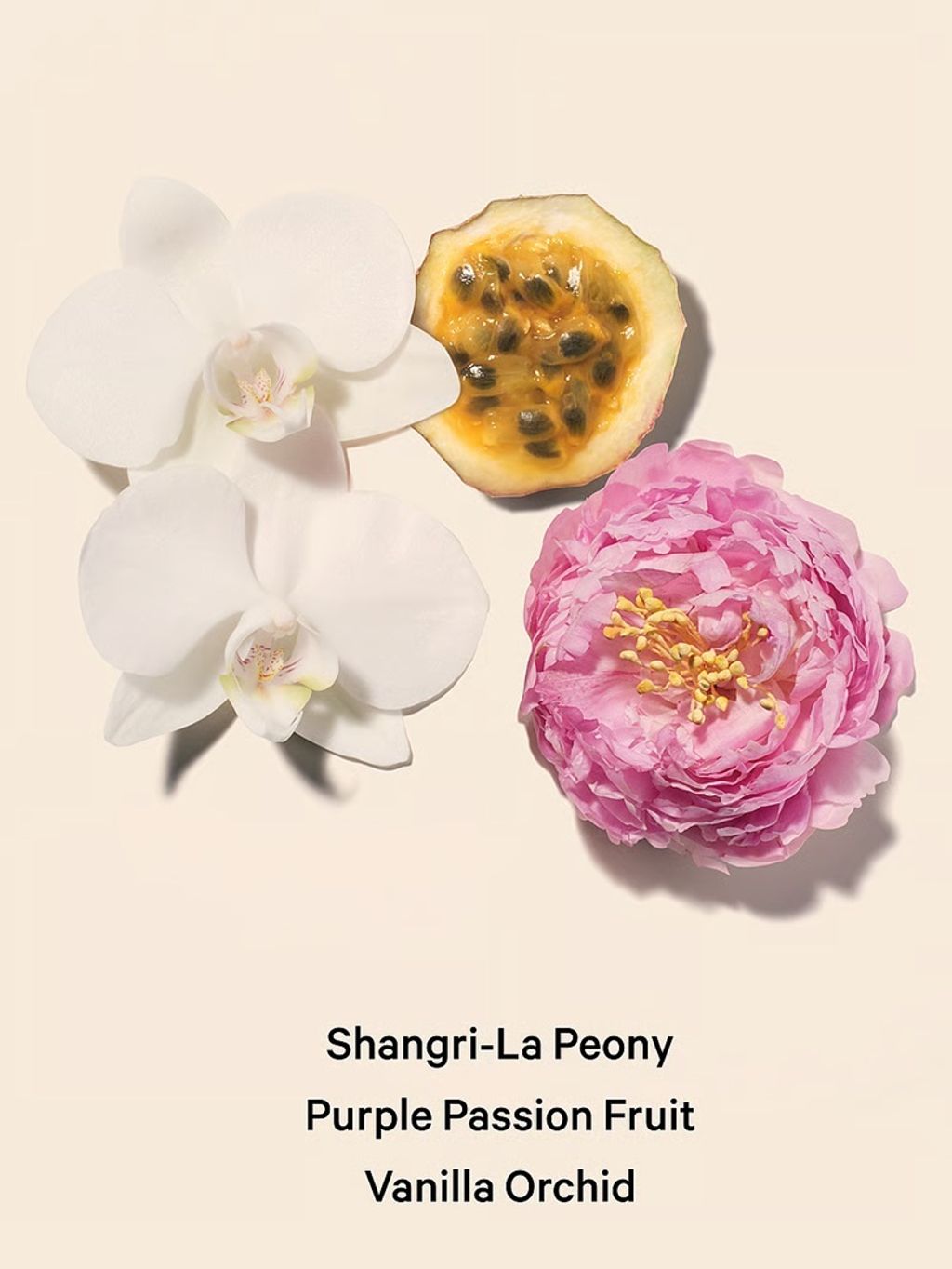 - Notes: Purple Passion Fruit, Shangri-la Peony and Vanilla Orchid