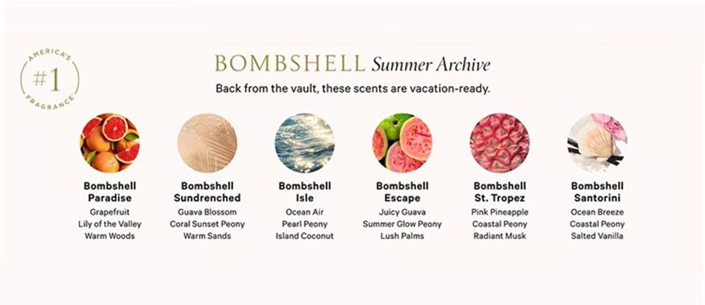 Summer just got a whole lot sweeter. Get exclusive, sunshine-inspired Bombshell scents from the archives with this set of six Mini Eau de Parfums.