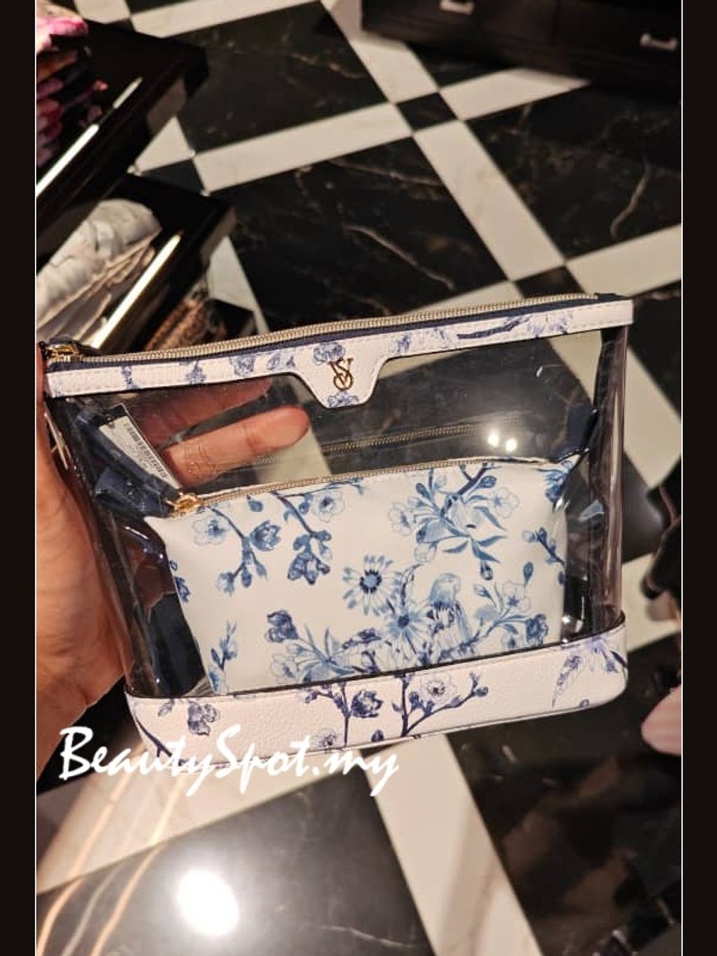 Victoria's Secret 2-Piece Makeup Bag - Blue Floral