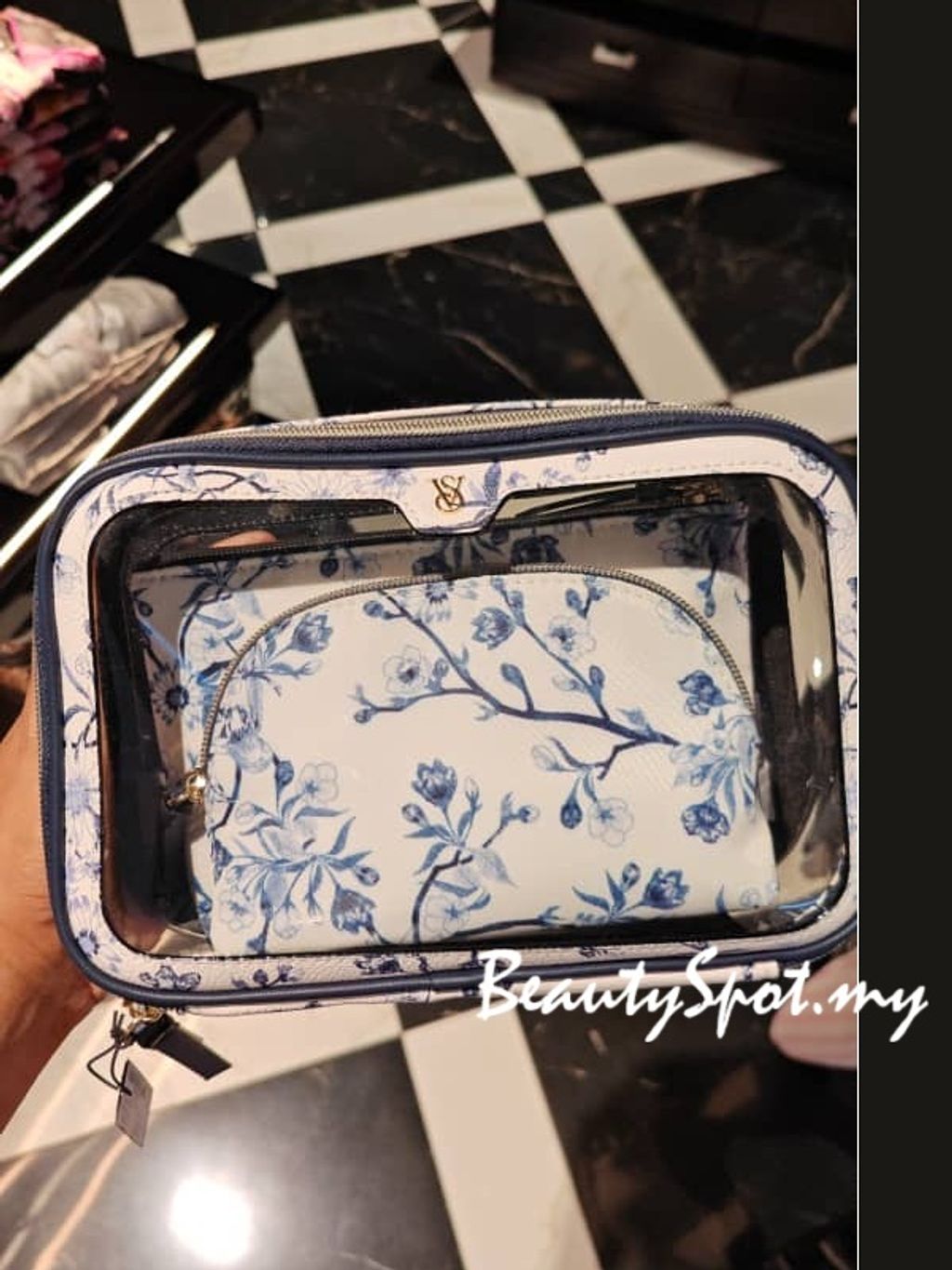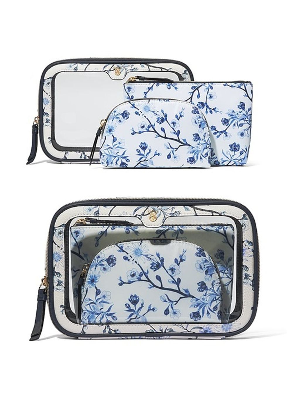 Victoria's Secret 3-Piece Beauty-To-Go Makeup Bag - Blue Floral