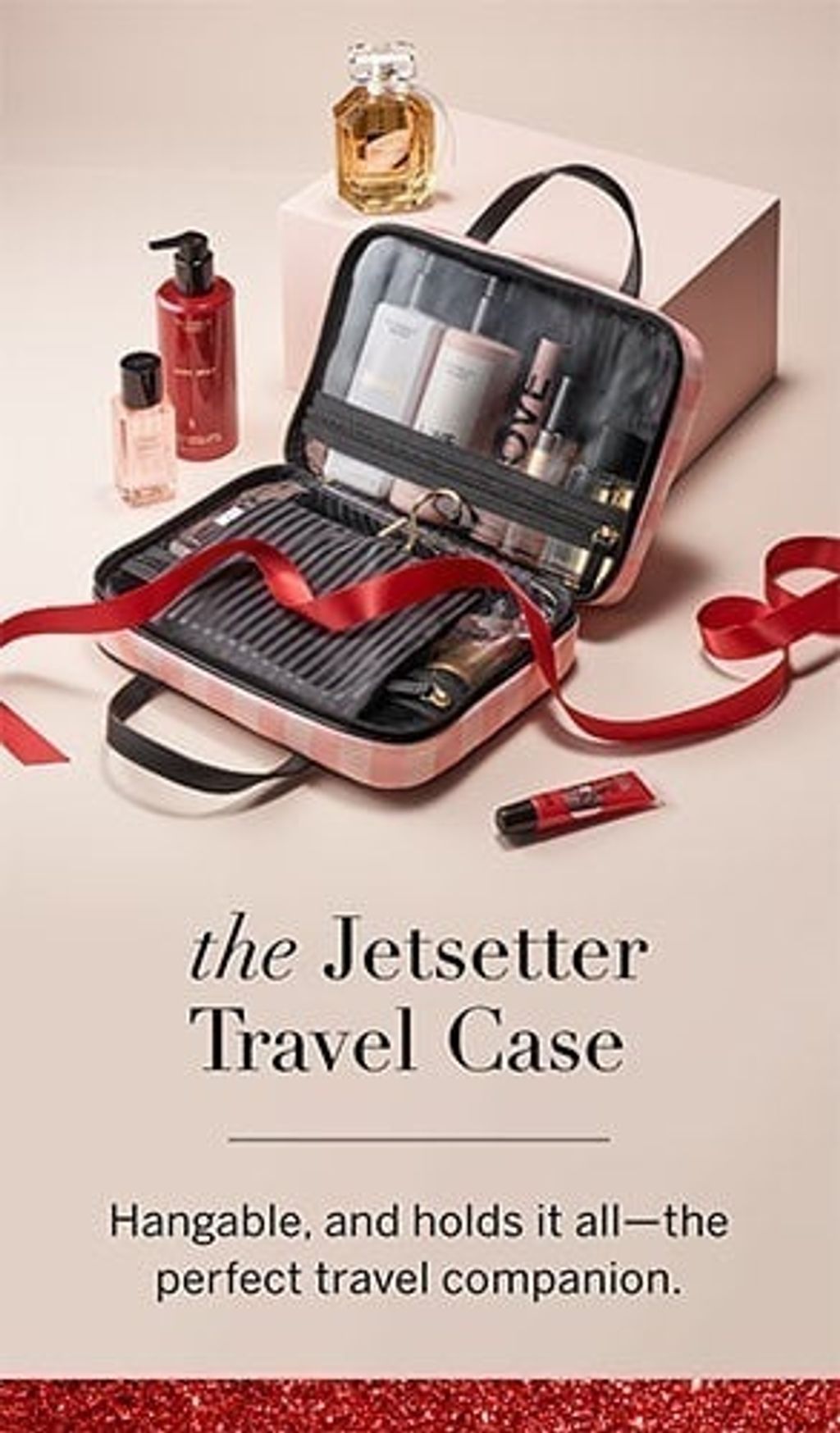 Jet, set, go. This sleek case holds everything you could ever need. Keep everything organized in your travel bag, from fragrance to hair care with an optional hook to hang as you get ready.